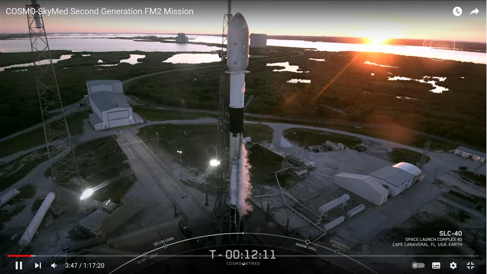 Screenshot from SpaceX Webcast of the launch of CSG-2 at sunset